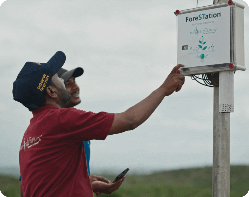 Over the years, we have transformed this vision into reality through innovation and purpose. We were among pioneers to introduce geo-tagging of trees, develop ForeStation™ IoT devices for transparent, data-driven environmental monitoring, and experiment with drone seed bombing and blockchain technology to bring credibility and traceability to every sapling planted.